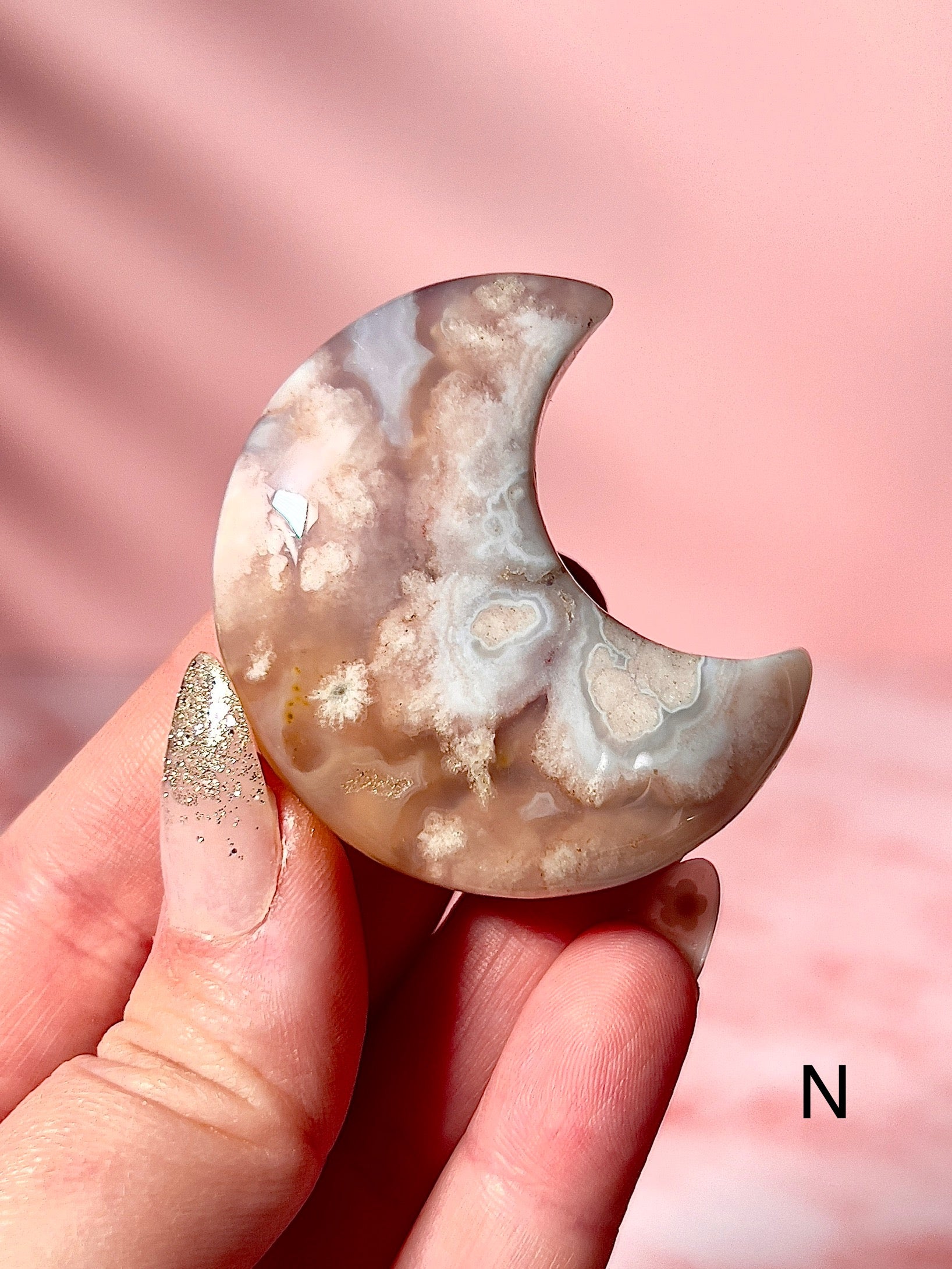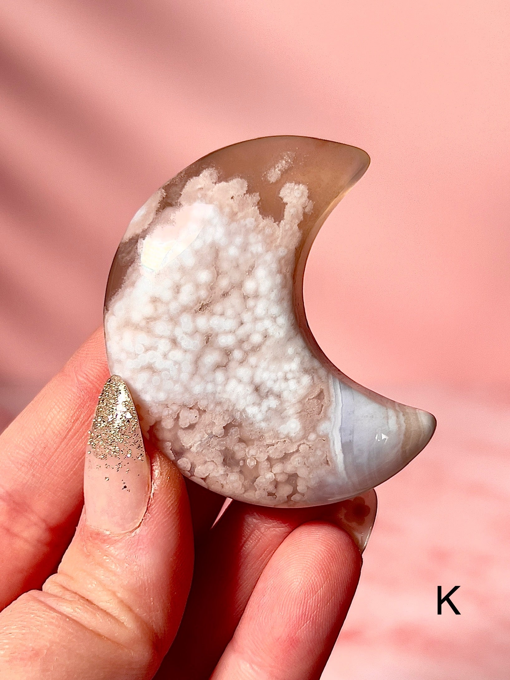 Blue and Pink Flower Agate Moons - Choose Your Own