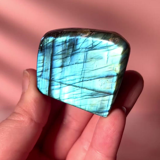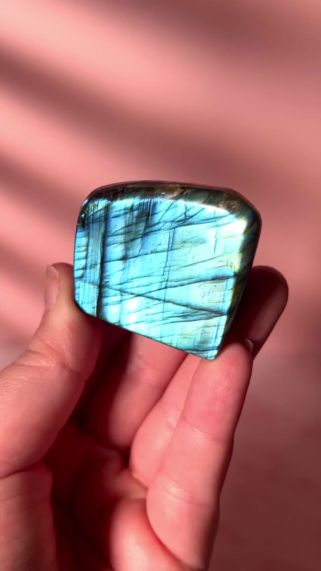 This Labradorite Freeform showcases vibrant flashes of blue and teal within a smooth, polished freeform shape. Its dynamic colors and natural labradorescence make it perfect for display, meditation, or as a captivating addition to your crystal collection. Ideal for collectors or as a unique gift.