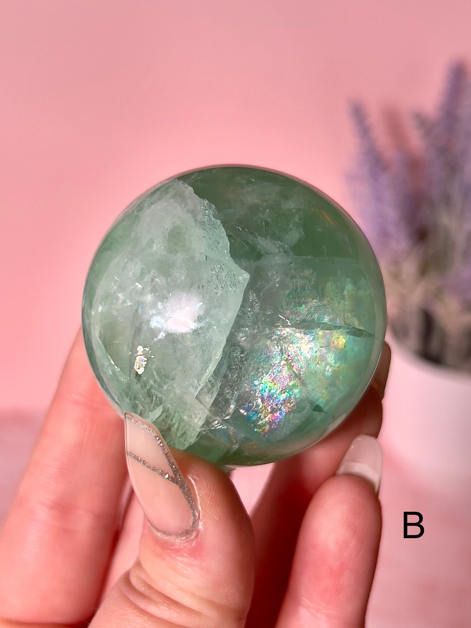 Add a calming and luminous touch to your space with these Blue Lake Fluorite spheres, featuring serene shades of blue and green with natural banding. Each sphere is polished to a smooth, glossy finish, highlighting the stone’s unique patterns. Perfect for display, collection, or as a thoughtful gift. Choose your favorite!
