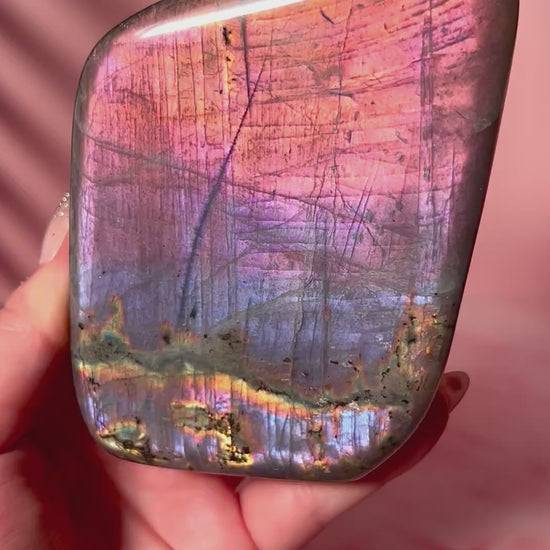 Discover the mesmerizing beauty of this Madagascar labradorite freeform, a unique polished stone showcasing rainbow flashes of blue, green, purple, orange, and yellow. Sourced directly from Madagascar, this one-of-a-kind crystal makes a stunning addition to your collection, meditation space, or home display. Its natural patterns and iridescent shimmer ensure that no two stones are alike.
