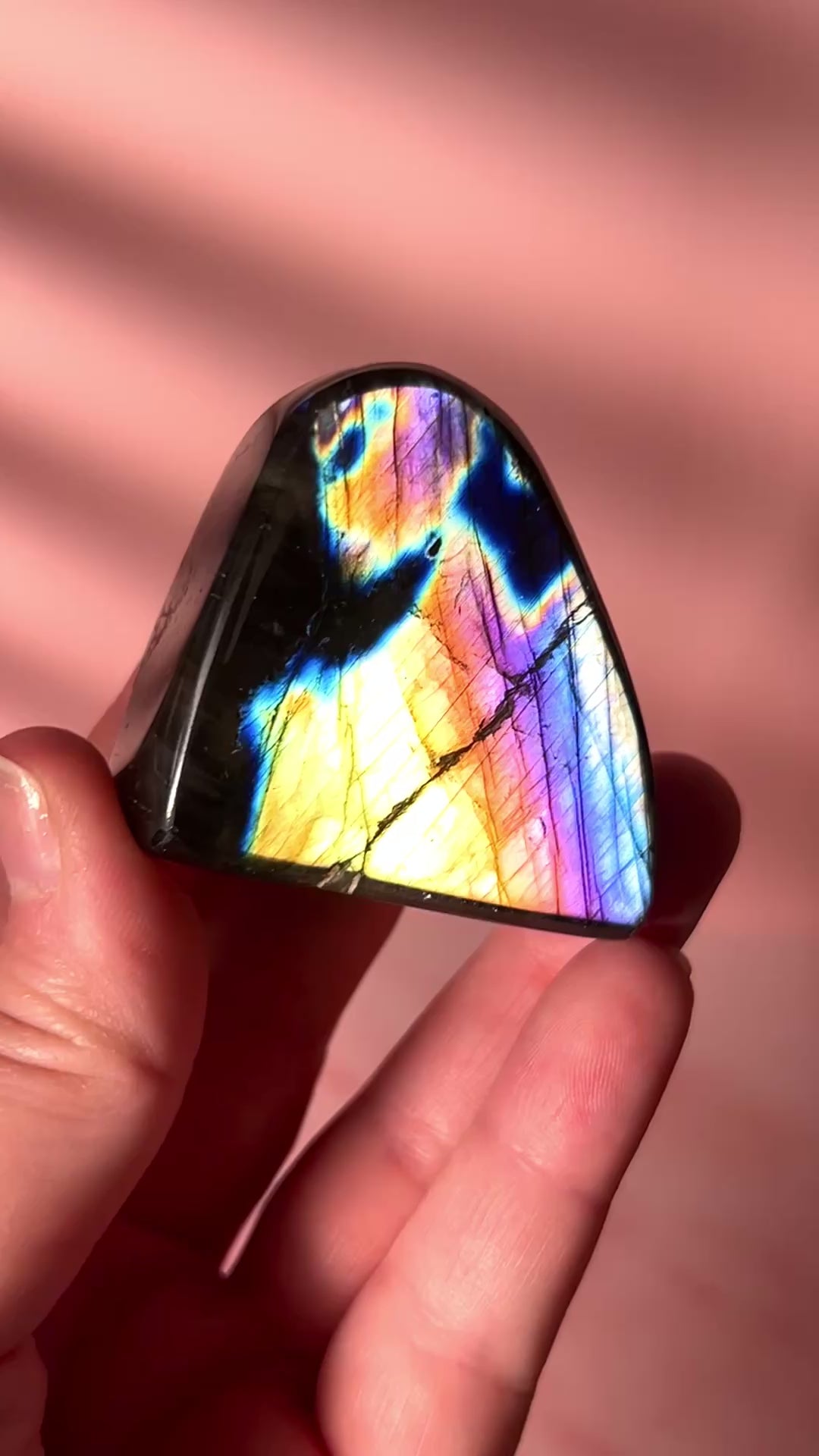This High Quality Labradorite Freeform showcases vibrant rainbow flashes within a smooth, polished freeform shape. Its dynamic colors and natural labradorescence make it perfect for display, meditation, or as a captivating addition to your crystal collection. Ideal for collectors or as a unique gift.