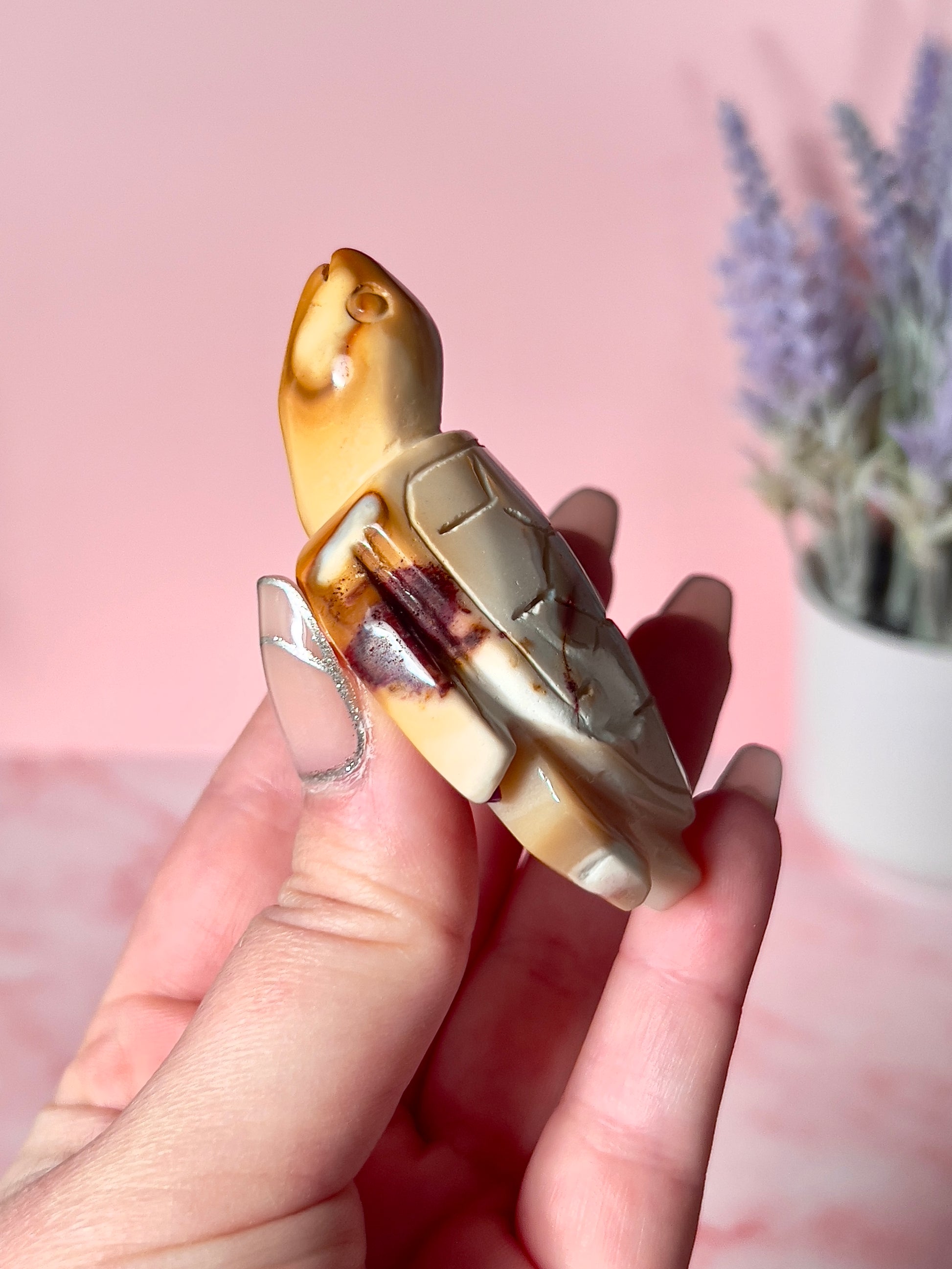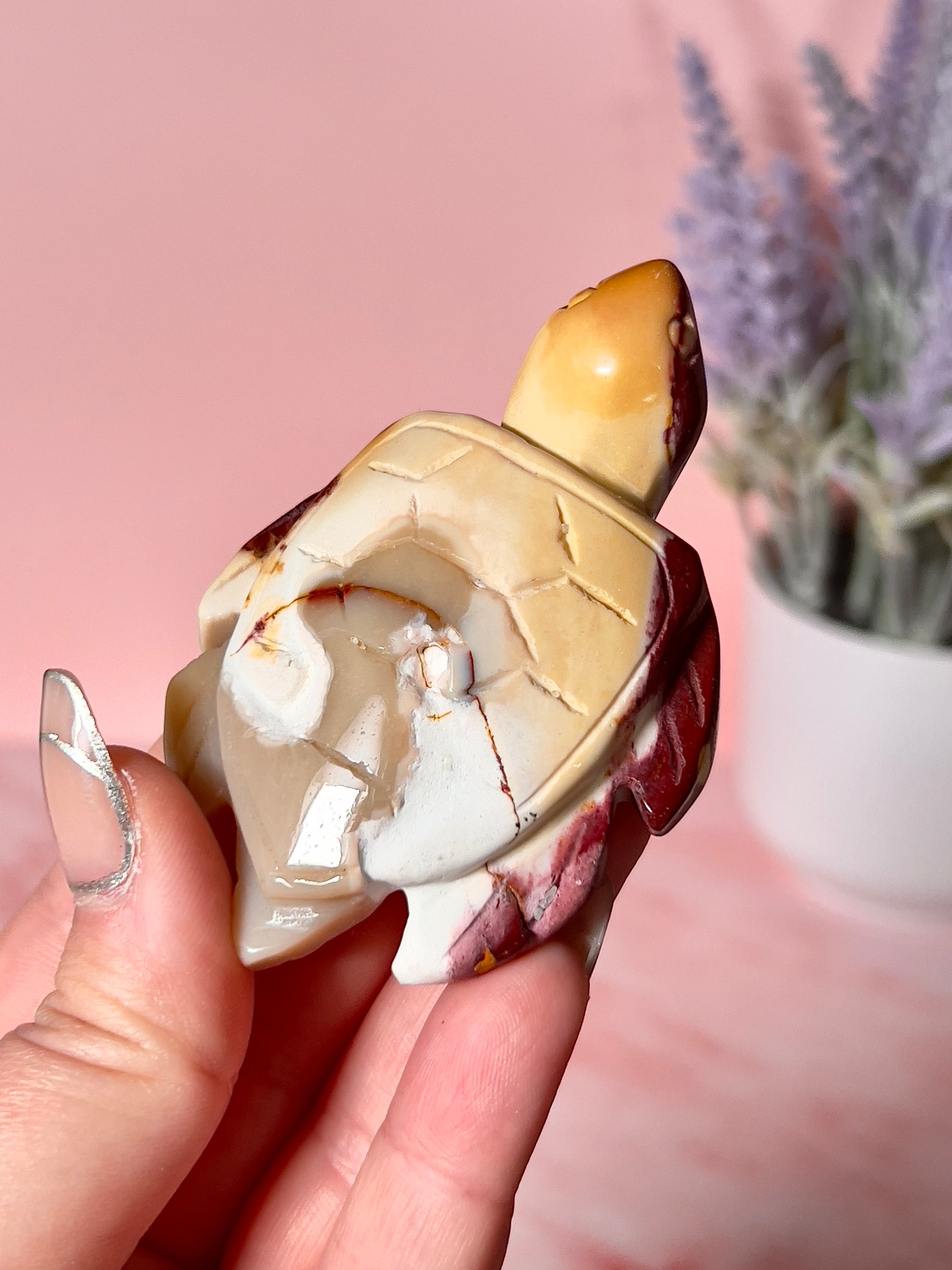 Add a charming and grounding touch to your space with this Mookaite Jasper turtle, carved to highlight the stone’s warm earthy tones of red, cream, and brown. Polished to a smooth finish, and perfect for display, collection, or as a thoughtful gift.
