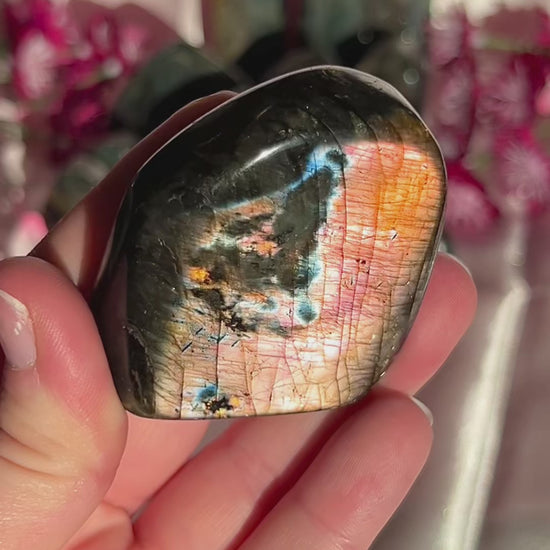 Video shows labradorite flashing in natural sunlight.