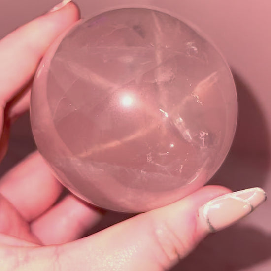Discover the soothing beauty of this Madagascar rose quartz sphere, a perfectly polished stone showcasing gentle pink hues and natural patterns. Ideal for meditation, crystal collections, or as a decorative accent, each sphere is unique and radiates calming, loving energy.