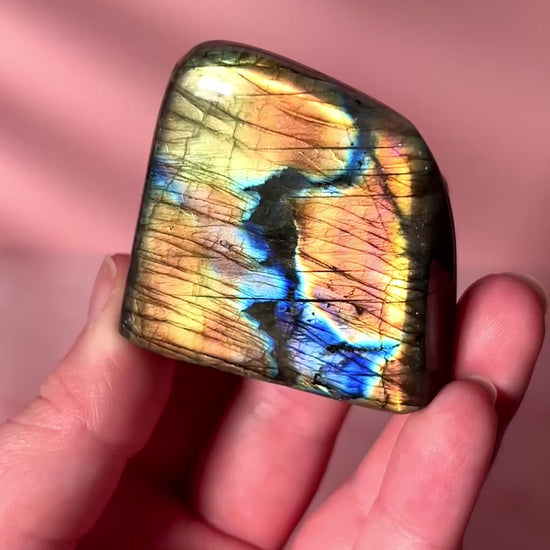 This Labradorite Freeform showcases vibrant flashes of yellow and orange within a smooth, polished freeform shape. Its dynamic colors and natural labradorescence make it perfect for display, meditation, or as a captivating addition to your crystal collection. Ideal for collectors or as a unique gift.